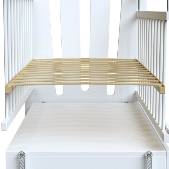 - Возможность регулировки высоты передней стенки кроватки в зависимости от возраста малыша.