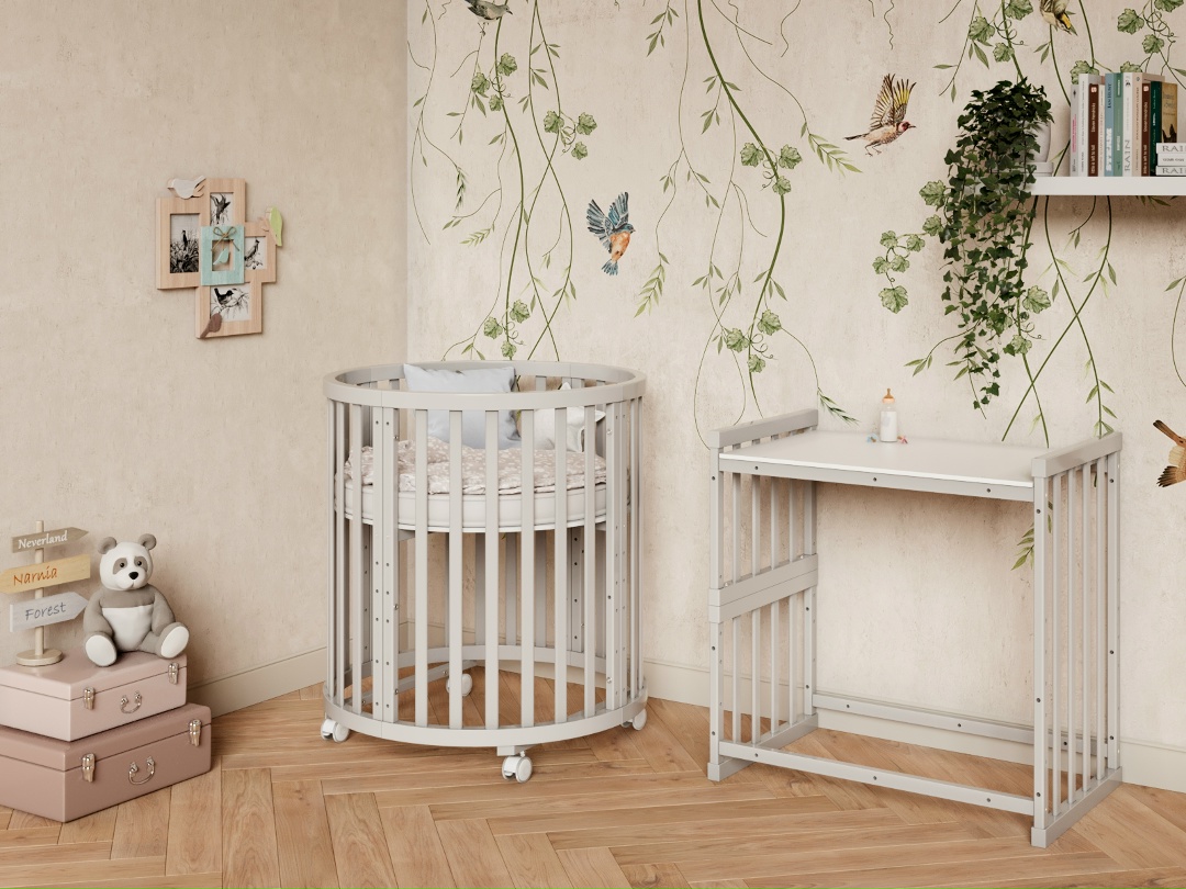 Детская кровать в круглом формате с колесами достаточно легкая, но из прочной, экологичной древесины. Мамы с легкость смогут передвигать кроватку хоть каждый день. У данной кроватки отсутствуют острые углы, что сводит к минимуму риск травм. Верхние радиусы круглой и овальной формы оборудованы специальными силиконовыми накладками-грызунками, которые защищают детские зубки. По мере того, как растёт малыш, вместе с ним растёт и кроватка!
